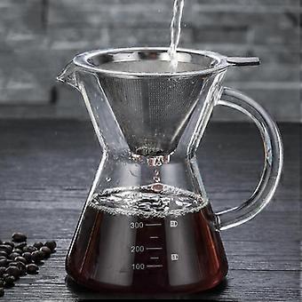 Ανθεκτικό στη θερμότητα δοχείο καφέ καφετιέρας γυαλιού με το φίλτρο χοάνης ανοξείδωτου
