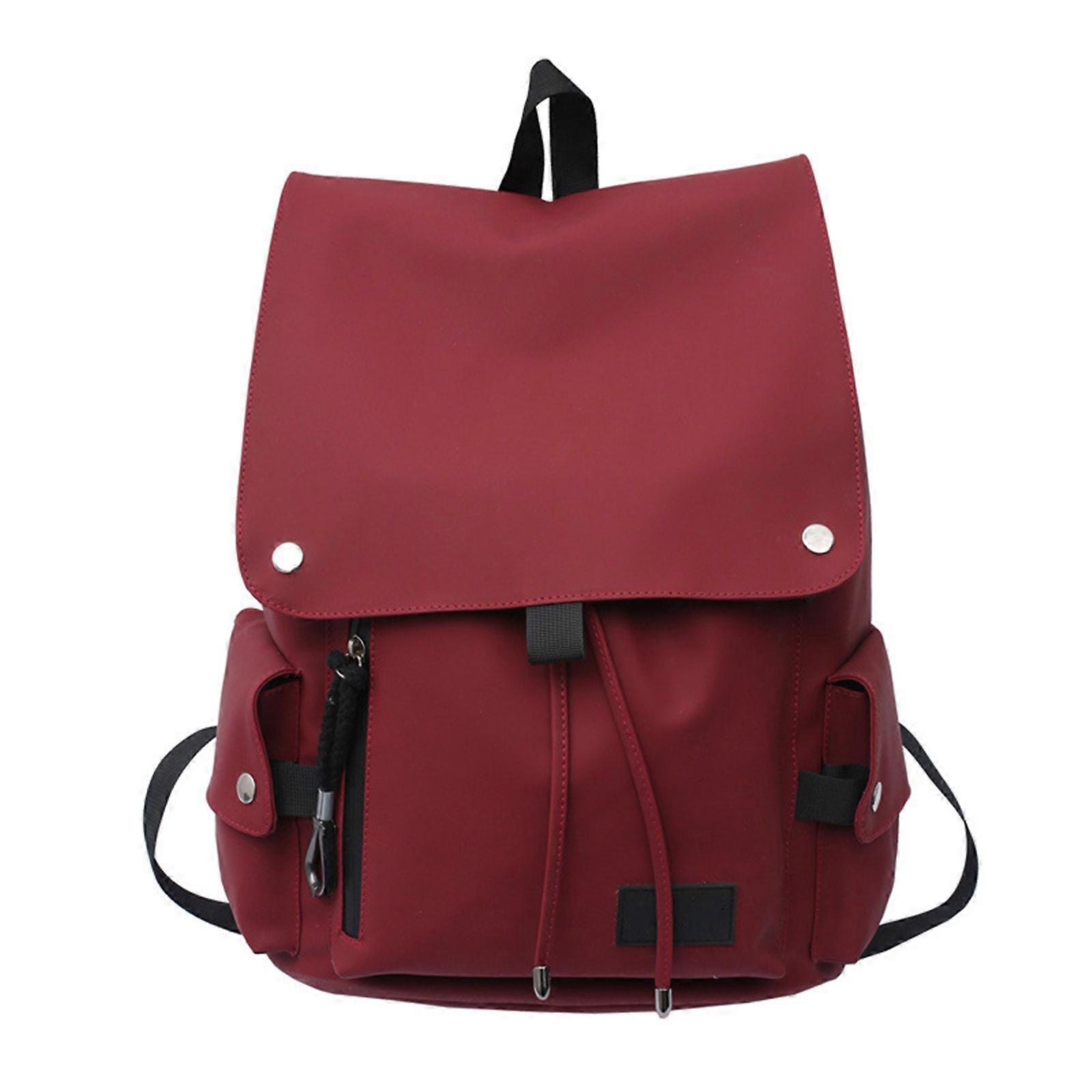 Water Resistant Motorcycle Style Large Capacity Student Backpack PU Leather Flap Drawstring School Shoulder Book Bag Red
