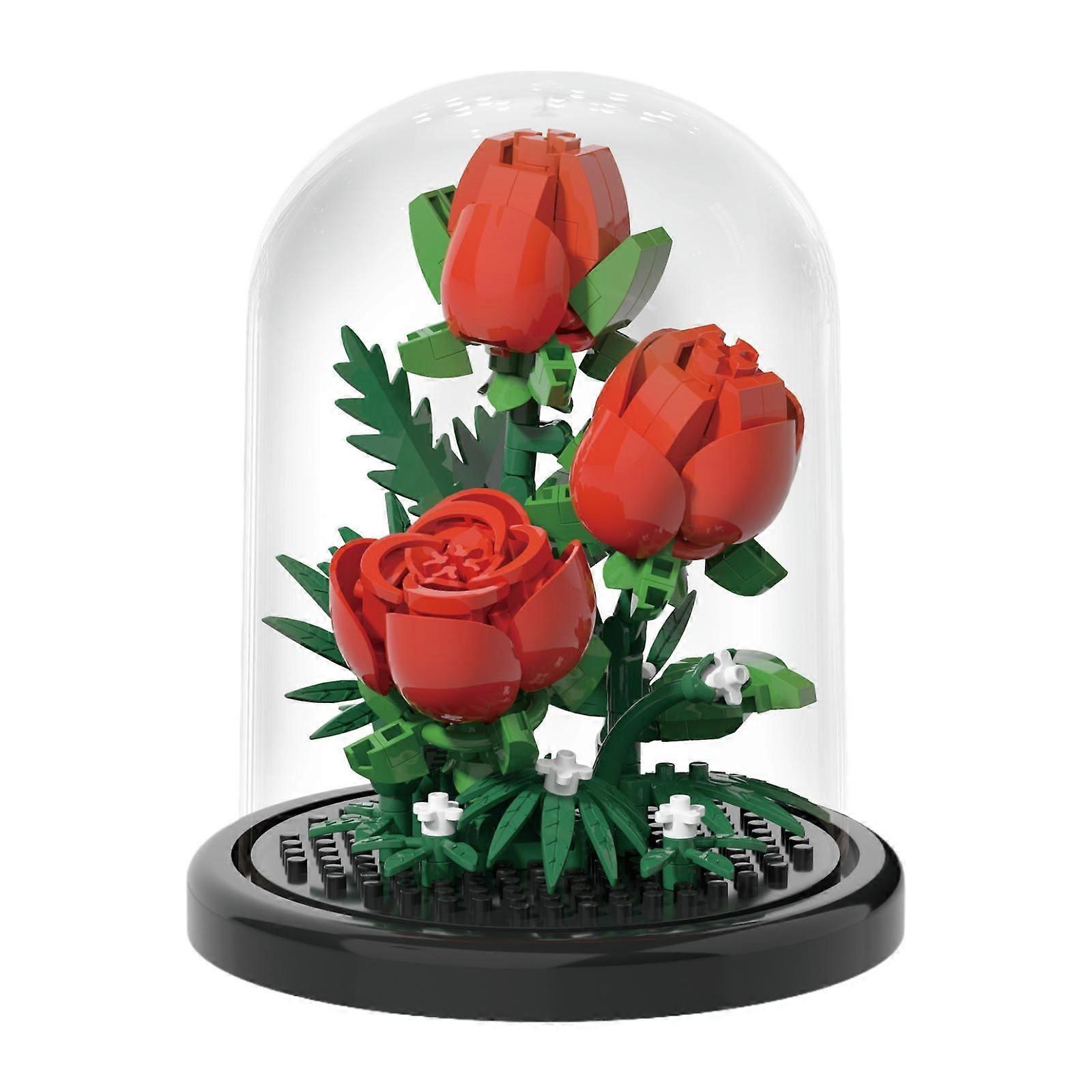 Flower Bouquets Building Set Creative Toy Gift for Birthday Anniversary Moms red