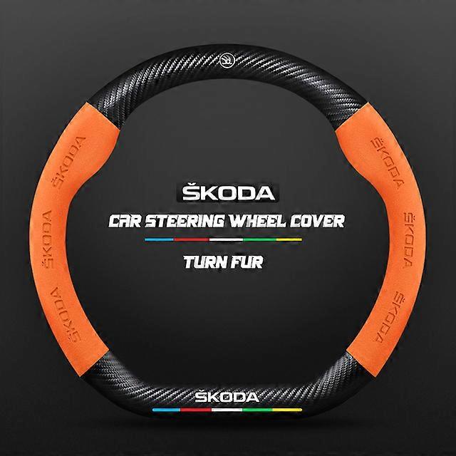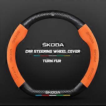 Carbon Fiber Vehicle Interior CarSteering Wheel Cover Alcantara for Skoda Octavia 2 1 A7 Fabia Superb Yeti Kodiaq Karoq Slavia Vehicle Interior CarAcc