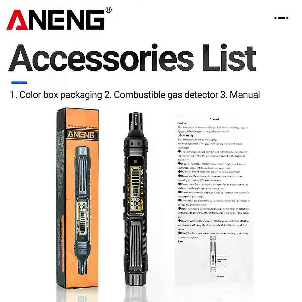 [DETAIL] ANENG GN805 Combustible Gas Leak Detector 50~1000PPM Sound Alarm Gas-sensitive Semi-conduct Detector LCD Backight Screen Tools Summary: This instrument is a combustible gas leak detection device used to quickly and reliably detect leaks of combustible gases. Technical parameters: Sensor: Gas sensitive semiconductor Response range: approximately 50PPM-1000PPM (methane) Sensitivity: Approximately<50PPM Gas detection (department list): Acetone, acetylene, alcohol, ammonia, benzene, ethanol, epoxyacetylene, gasoline, hexane, hydrogen, methane, petroleum gas, natural gas, paint thinner, propane, solvents, etc. The preheating time is about 30 seconds. Response time:<500PPM (approximately 5 seconds);> 500PPM (approximately 2 seconds). Alarm mode: sound and indicator light. Usage environment: Temperature 0 ℃ -50 ℃, humidity 20% -80% RH. Storage environment: Temperature -10 ℃ -60 ℃, humidity 20% -80% RH. Battery: 2 1.5VAAA (size 7) batteries. Product size and weight: 180.8 (L) x26.1 (W) x29.2 (H) Weight: 75.7g (including battery) Specification: Product model GN805 Response range 50~1000ppm Use battery AAA*2 Number seven(Without battery) Warm-up time 30 seconds Use environment 0°C-50°C/20%-80%RH Sensor Gas sensitive semiconductor Sensitivity Approx.< 50ppm Alarm method Sound and indicator lights Adjustable sensitivity S key toggle Storage conditions -10°C-60°C/20%-80%RH Response time <=500ppm: about 5 seconds >500ppm: about 2 seconds Automatic shutdown No operation within 4 minutes,automatic shutdown Package: 1 * Color box packaging 1 * Combustible gas detector 1 * Manual [ATTRIBUTES] - Battery Included: No - Hign-concerned Chemical: None - Model Number: GN805 - Battery Included: No - Hign-concerned Chemical: None - Model Number: GN805 - With LCD Screen Or Not: Yes - Gas Type: Multifunctional - DIY Supplies: Electrical - Brand Name: ANENG - Origin: Mainland China - Certification: None - Product model: GN805 - Response range: 50~1000ppm - Use battery: AAA*2 Number seven - Warm-up time: 30 seconds - Use environment: 0℃-50℃/20%-80%RH - Sensor: Gas sensitive semiconductor - Sensitivity: Approx.<50ppm - Alarm method: Sound and indicator lights - Adjustable sensitivity: S key toggle