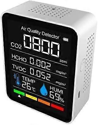 CO2 Detector Air Quality CO2/HCHO/TVOC/TEMP/HUMI Detector Temperature Humidity Tester Carbon Dioxide Monitor (White),2024 Ping