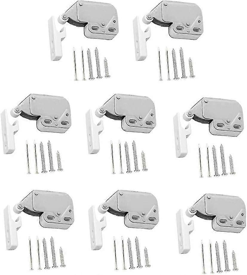 Snap Lock Push-To-Open Mini-Latch Spring-Loaded Push Button Nickel-Plated Metal - Specially Reinforced Design The Clasp Allows A Simple Push To Open And Close Cabinet Doors, Storage Boxes, Trunk Lids Or Drawers Spring Latches Can Be Used Universally In Mobile Homes, Caravans, Furniture Construction, Boats, Caravans Or Kitchen Furniture And Much More. Furniture Fixing Accessories Are Adjustable - Adjustment Is Possible Thanks To The Slot Assembly, Locking The Cabinet Door For Screwing Very Easy To Install And Use.