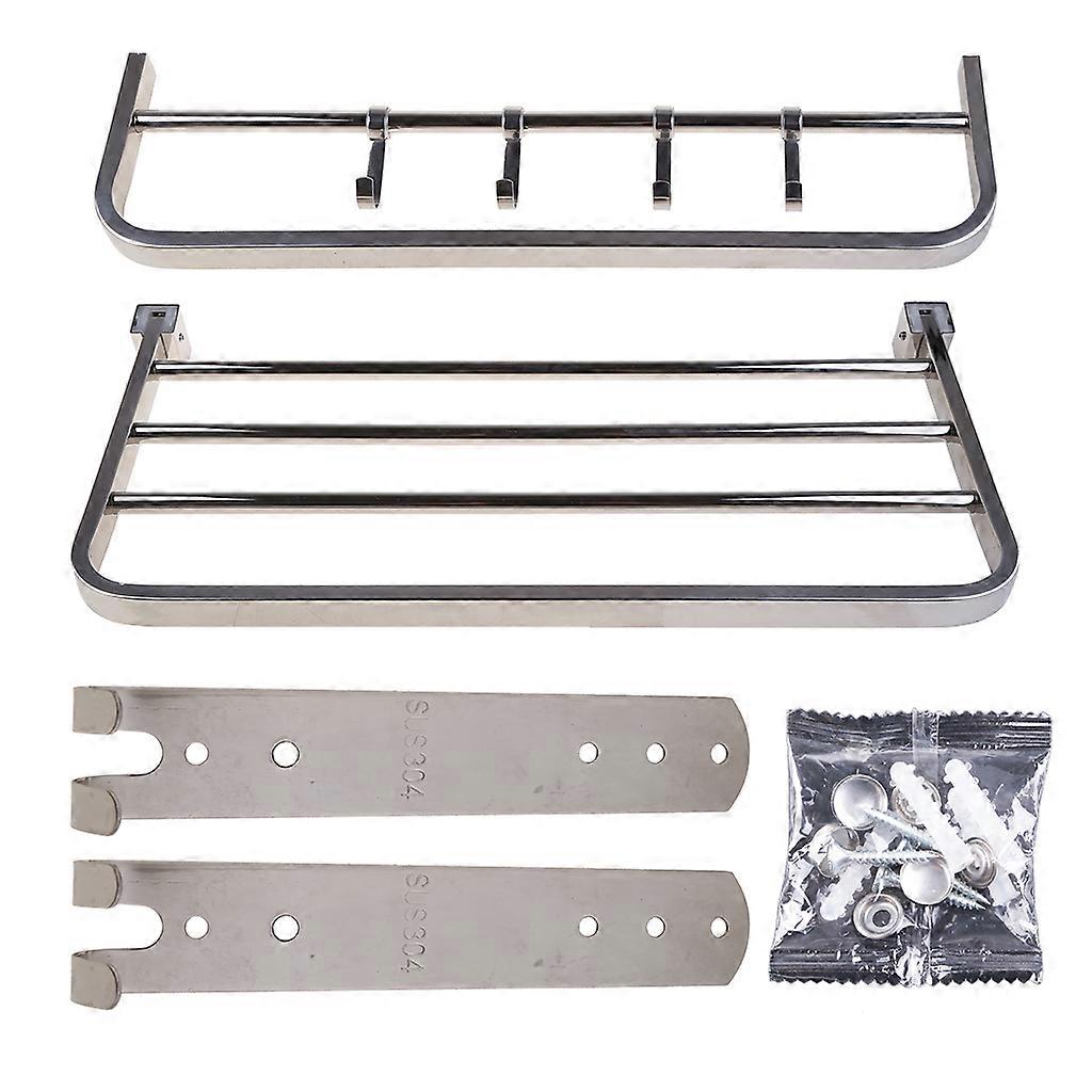 Stainless Steel Wall Mounted Foldable Bath Towel Rack Rail Holder Punch-Free Bathroom Storage Shelf with 4 Sliding Hooks 50