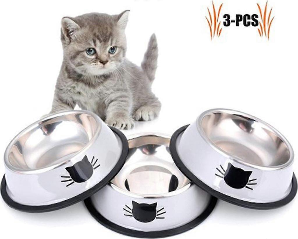 Stainless Steel Cat Set Bowl - Non-slip, 3-Pack