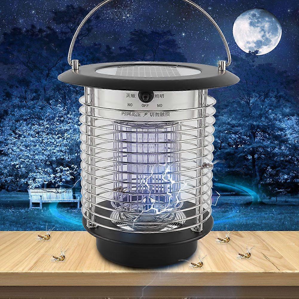 Stainless Steel Solar Powered LED Light Pest Bug Zapper Mosquito Killer Lamp Garden (Black)