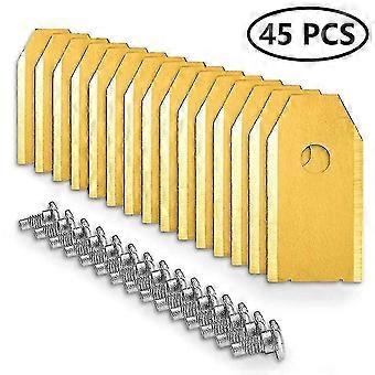 Replacement Robotic Mower Blades 45pcs Robot Mower Blades 35*18*0.75mm Replacement Golden Stainless Steel Garden Mowing Blade For