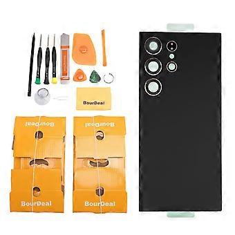 Back Glass Replacement Cover for Galaxy S24 Ultra 5G Rear Back Glass Door Cover with Pre Installed Camera Lens Tape Repair Tools Black