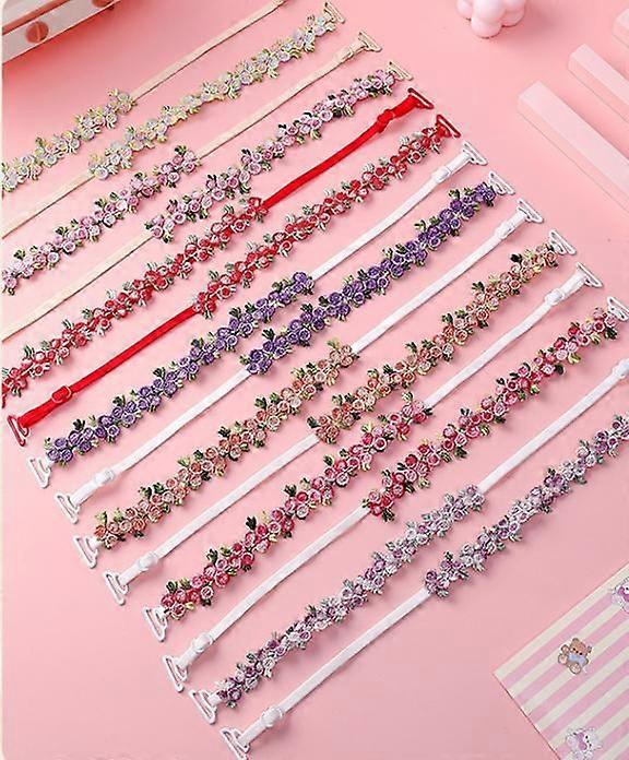 3 Pairs Bra Strap Replacement: Embroidered Lace Flower Adjustable Rhinestone Shoulder Straps Anti-Skid Belt For Women Bra Tops Accessories