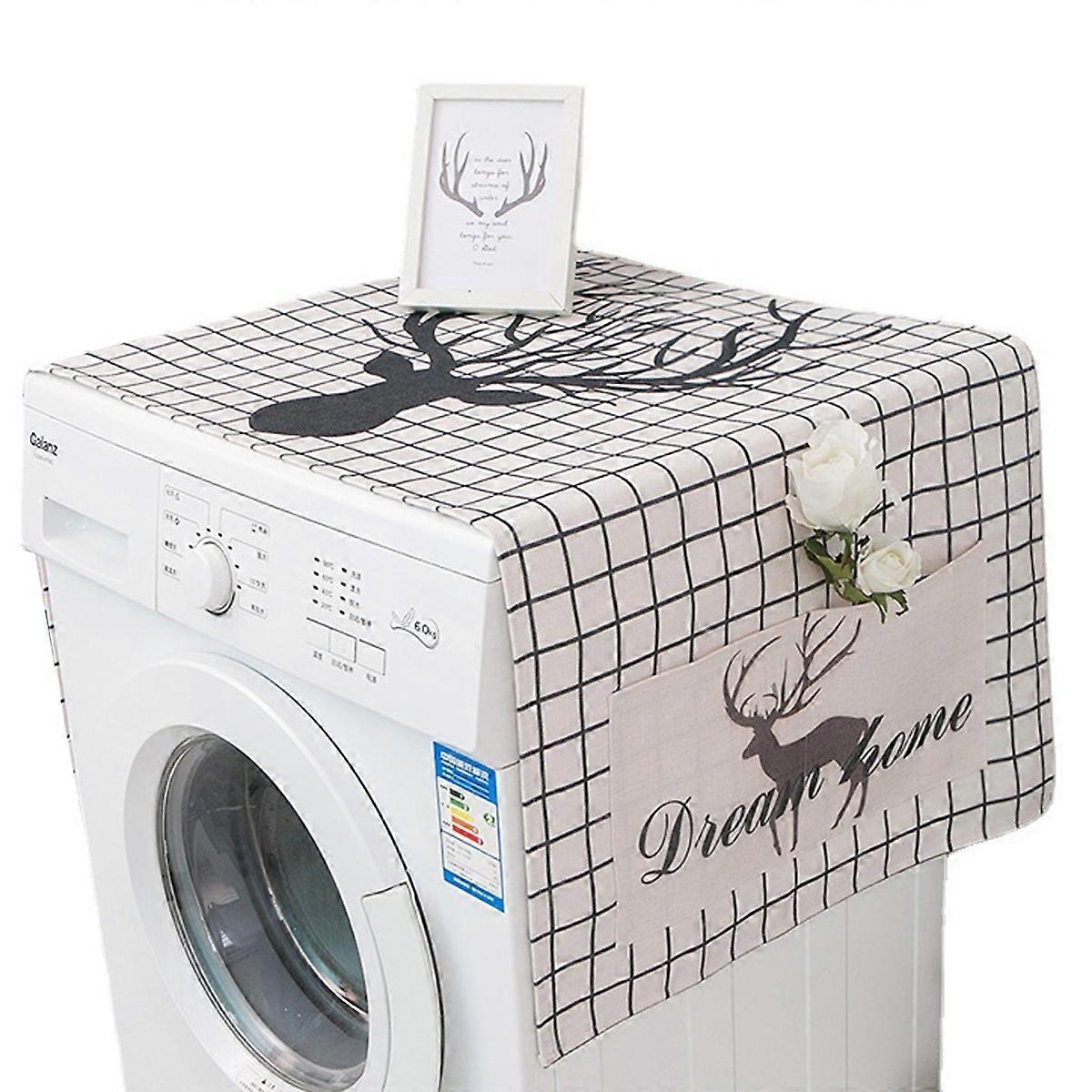 Anti-slip Washer and Dryer Top Covers,Dustproof Washer and Dryer Covers for The Top Fridge Dust Cover With 4 Storage Bags Checkered elk