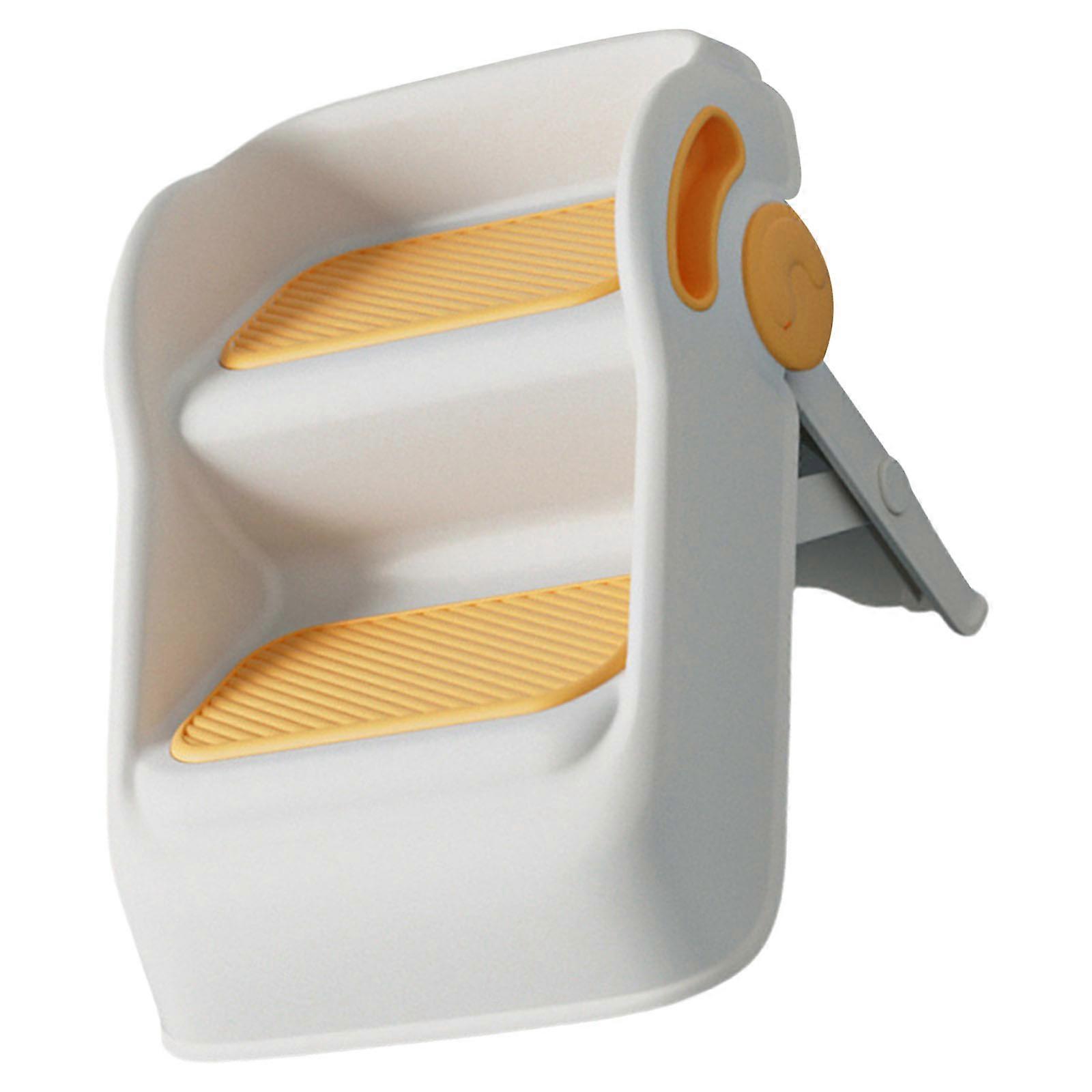 Anti Slip Kids Step Stool Foldable Design 2 Tiers Bathroom Stool Double Level Kids Step Stool Easy to Carry for Toddlers White and yellow