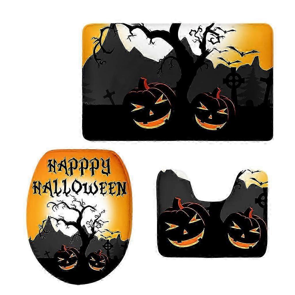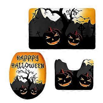 Non-Slip Halloween Print Bathroom Pedestal Toilet Floor Rug Set