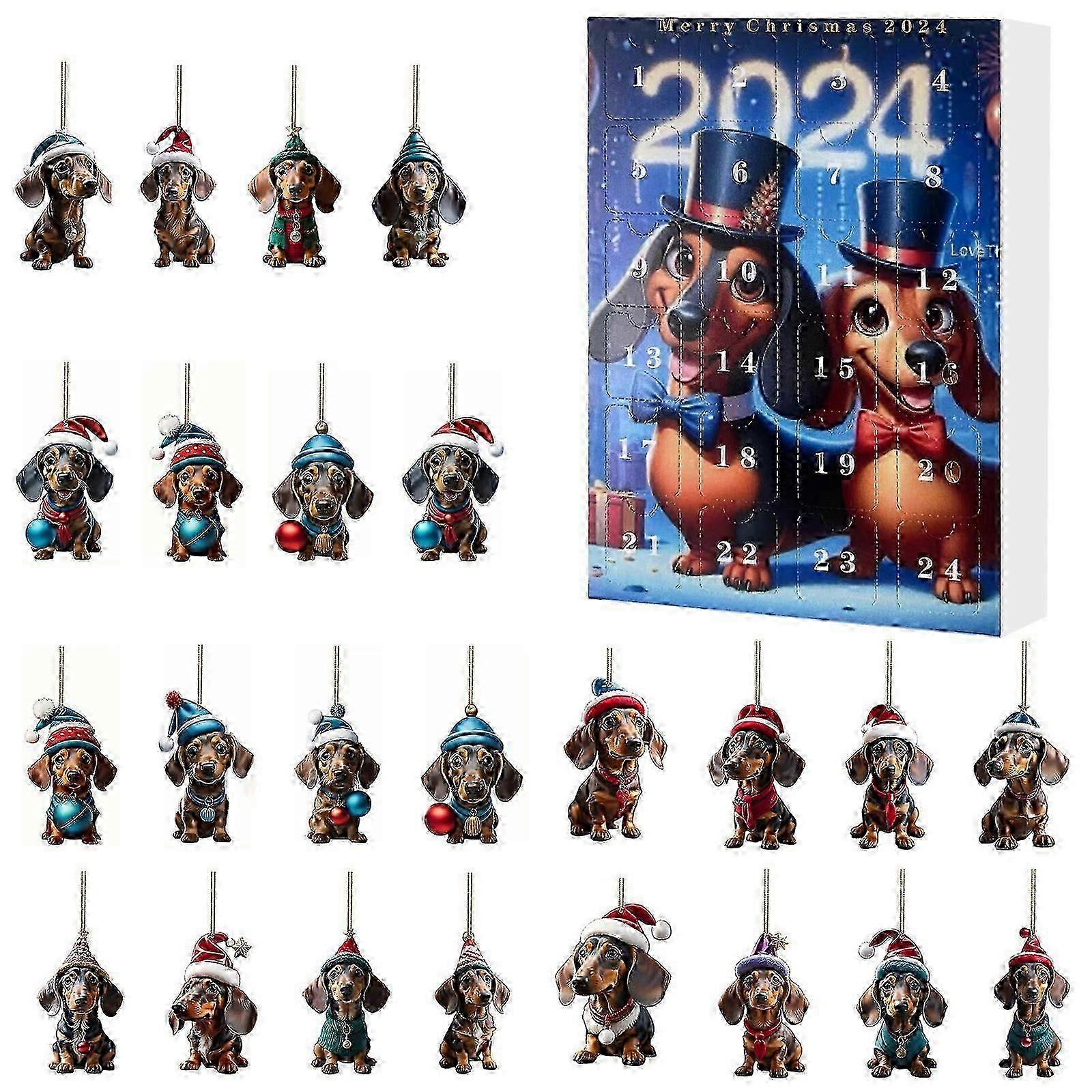 Countdown to Christmas in 2025, cute dachshund pet pendant, home decoration Christmas blind box-D