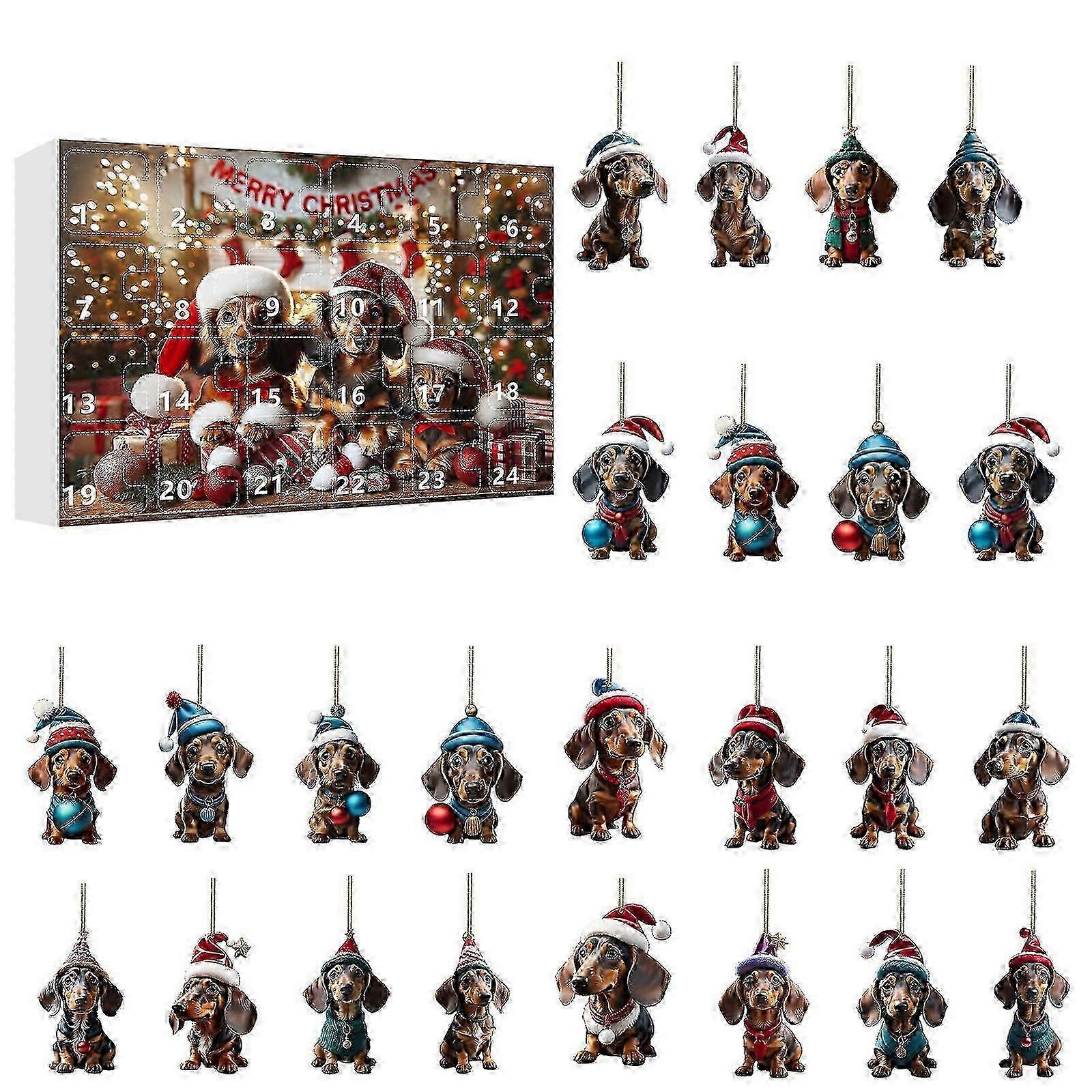 Countdown to Christmas 2025 Cute dachshund pet pendant Home decoration Christmas blind box-L