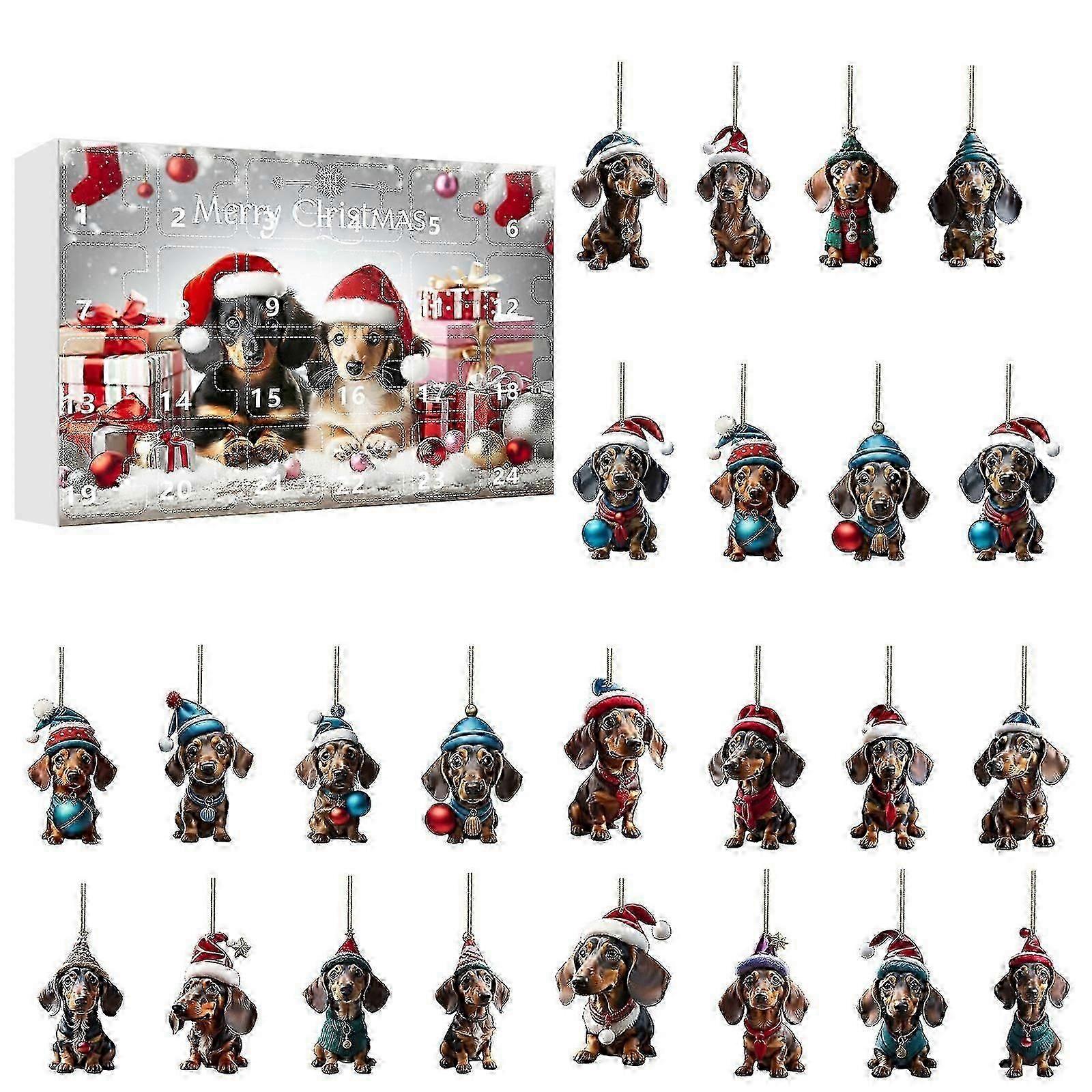 Countdown to Christmas 2025 Cute dachshund pet pendant Home decoration Christmas blind box-M