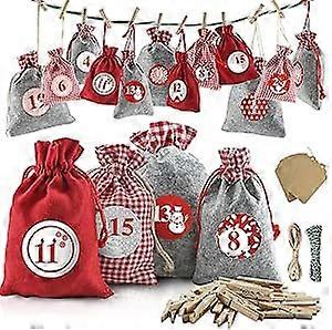 Christmas Countdown Advent Calendar Gift Hanging Bag Christmas German Stickers Blanket Fabric Grid Bag Set
