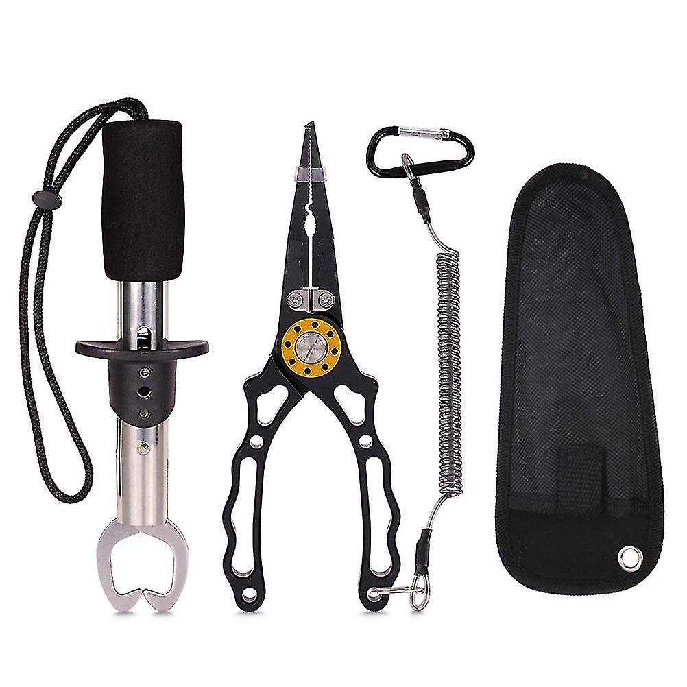 Fishing Gear Accessories - Aluminum Multifunctional Fishing Pliers with Lanyard, Corrosion Resistant, Hook Remover, Split Ring Pliers