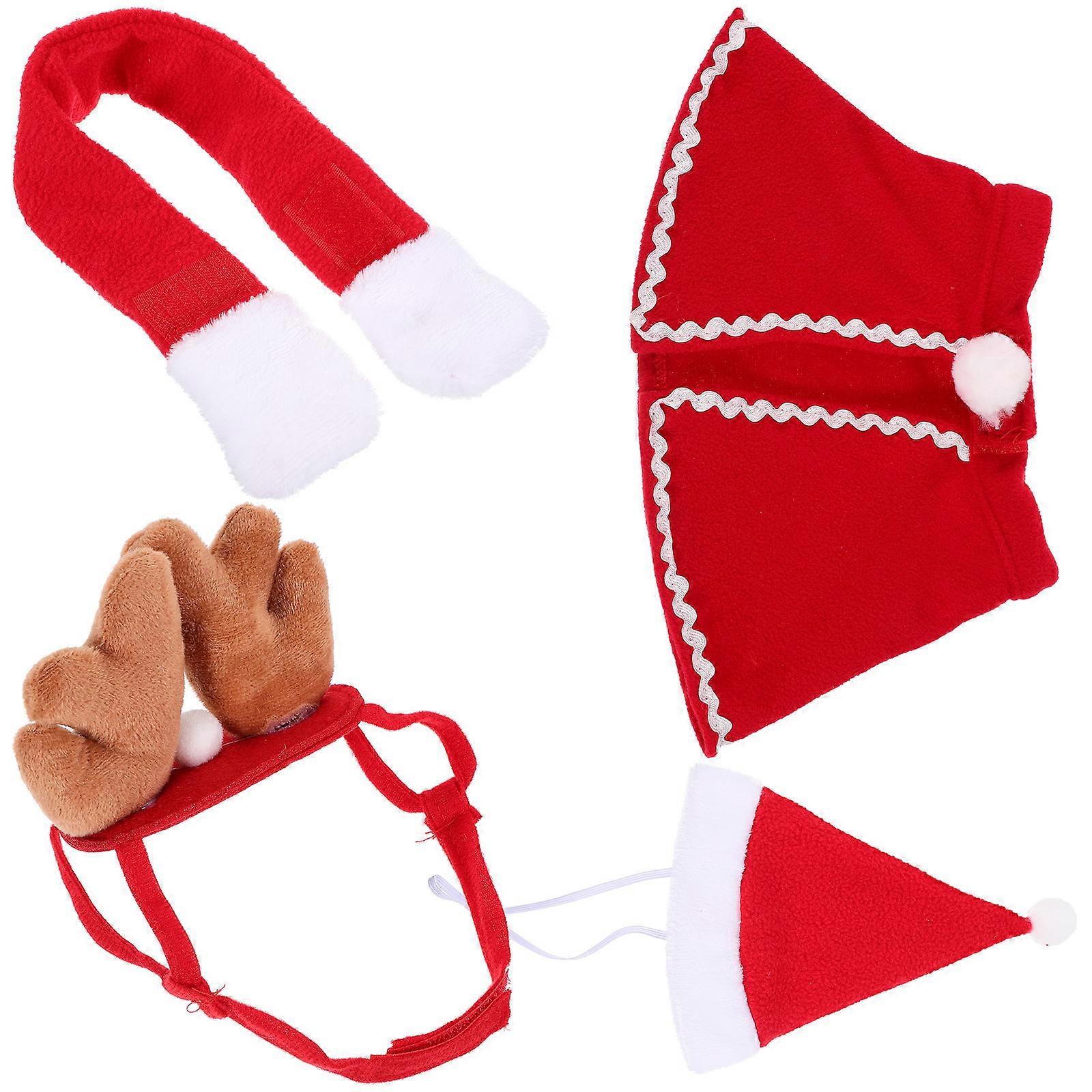 Whether it's a party or daily life, don't forget about your furry friend. Our best friend deserves the best gift for him. Let it join us with this Pet Decoration. Your pet will always be the most eye-catching pet of one of the event! The overall design is simple and generous, and the atmosphere of festival is strong. Features -Color:Assorted Color -Material:Coral fleece, cotton, yarn -Size:29.00X16.00X4.00cm/11.40X6.29X1.57in(cloak) -Size:11.00X9.00X6.00cm/4.32X3.54X2.36in(antler headband) -Size:46.00X5.00X1.50cm/18.08X1.97X0.59in(neckerchief) -Size:19.00X13.00X2.50cm/7.47X5.11X0.98in(hat) - Suitable for cats and dogs, cute and creative. Lovely shaped of this pet cloak set makes pets even cuter. - Lightweight and easy to wear, does not affect pet activities. Pet outfit set, making pets more fashionable. - This pet decor accessory is suitable for daily wear, gathering, holiday, festival parties, other occasions. - Adopting coral fleece, cotton, yarn material, this adorable cartoon pet clothes set is sturdy and durable for long time of wearing. - This pet cape set makes it a present for your good friends who have a pet, which is creative and unique. Package list: 1 x cloak 1 x antler headband 1 x neckerchief 1 x hat