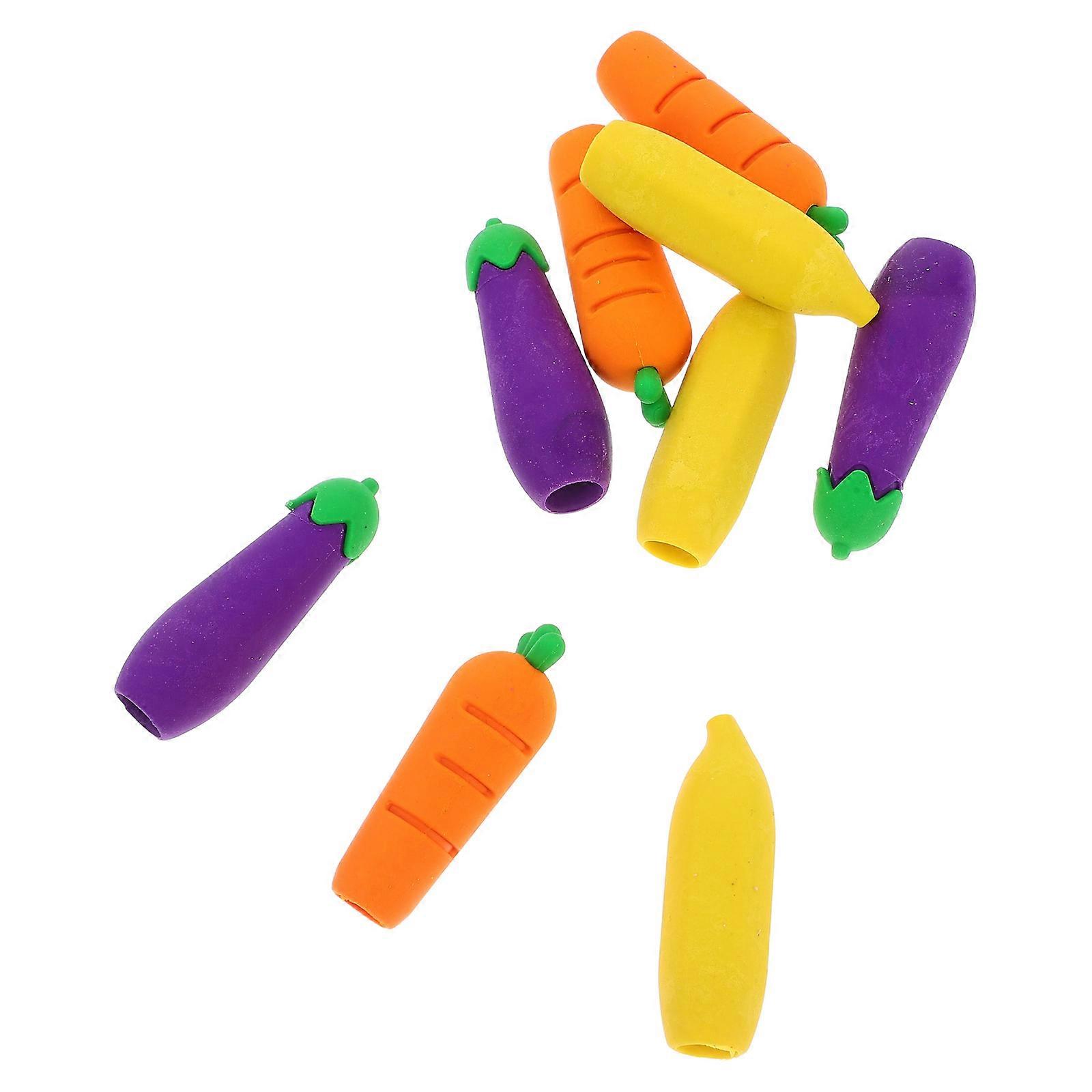 These adorable pencil caps come in fun shapes like carrots, bananas, and eggplants, adding a touch of whimsy to your stationery collection. They serve as both erasers and pencil extenders, making them a versatile addition to any classroom or office. Their cute design makes them a delightful accessory for students and professionals alike. Features -Color:Assorted Color -Material:Soft vinyl -Size(carrot):4.40X1.40X1.40cm/1.73X0.55X0.55in -Size(banana):4.40X1.30X1.30cm/1.73X0.51X0.51in -Size(eggplant):4.40X1.40X1.40cm/1.73X0.55X0.55in -Cute designs: featuring adorable carrot, banana, and eggplant shapes, these pencil caps and erasers add a fun and playful touch to your stationery collection -Convenient set: pencil extenders are easy to use and store your pencils, ensuring you always have a backup on hand -Multifunctional: the combination of pencil caps and erasers offers a versatile tool that serves multiple purposes, suitable for students, office workers, and home use -Durable materials: these pencil caps and erasers are built to last, providing reliable performance over time -Suitable for all ages: suitable for use in classrooms, offices, and homes, these cute and functional accessories are ideal for both children and adults Package list: 9 toppers