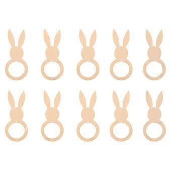 Adorable Bunny Napkin Rings Easter Theme Wooden Tableware Accessory Beige 12X5CM Decorative Item 10Pcs