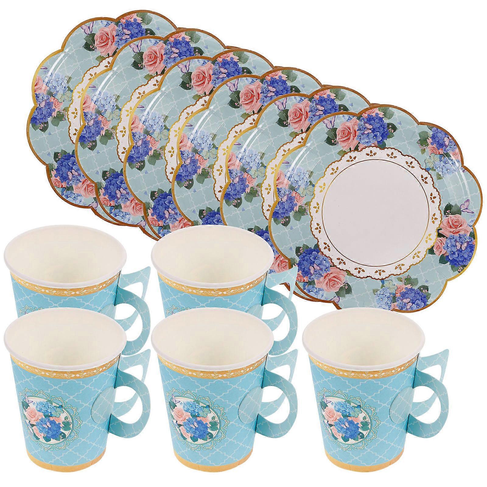 Afternoon Tea Tableware Vintage Paper Floral Plates with Cups 1Set