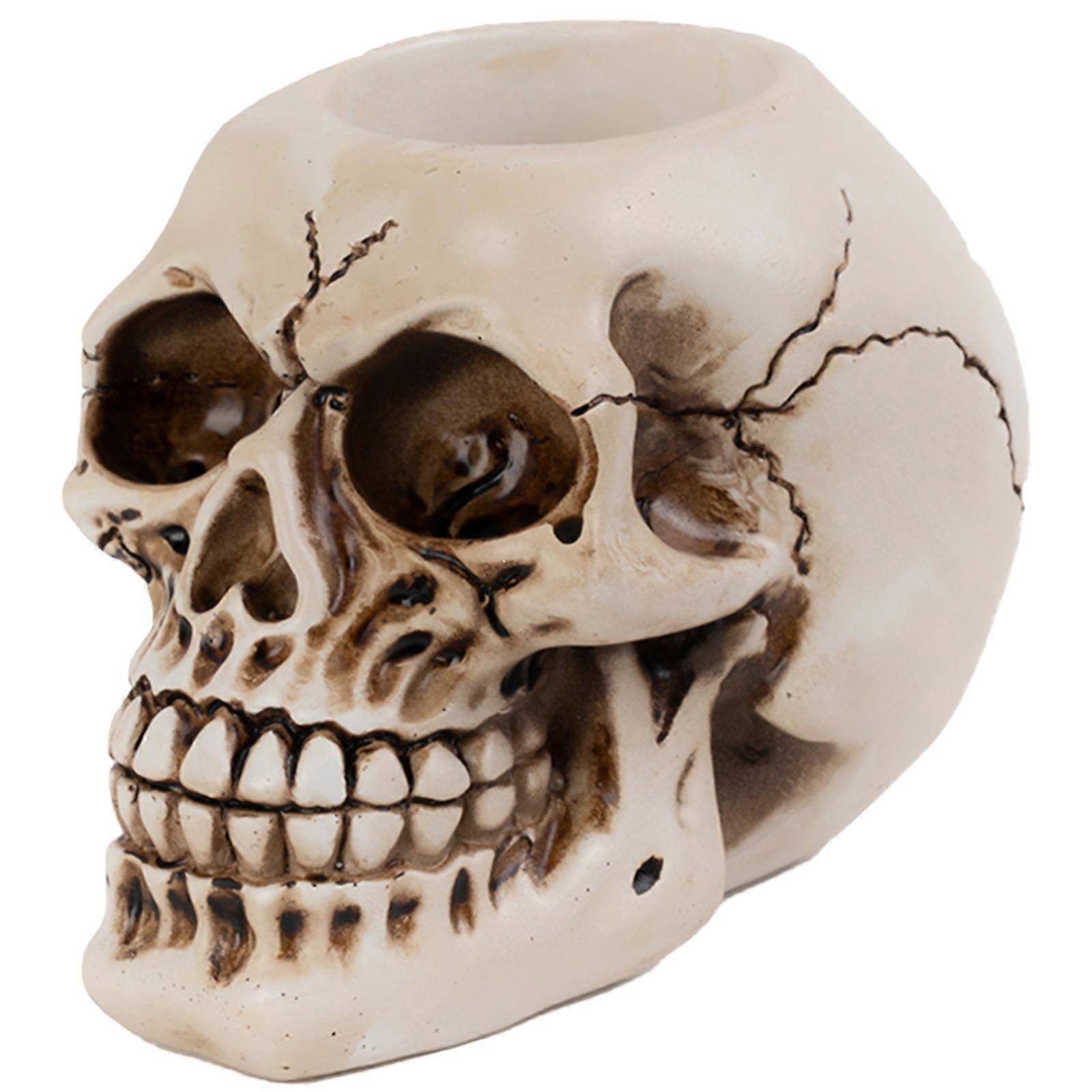 Eerie Skull Candle Holder in Resin, Perfect for Halloween Parties and Home Decor, Holds 1.6 Inch Candle White
