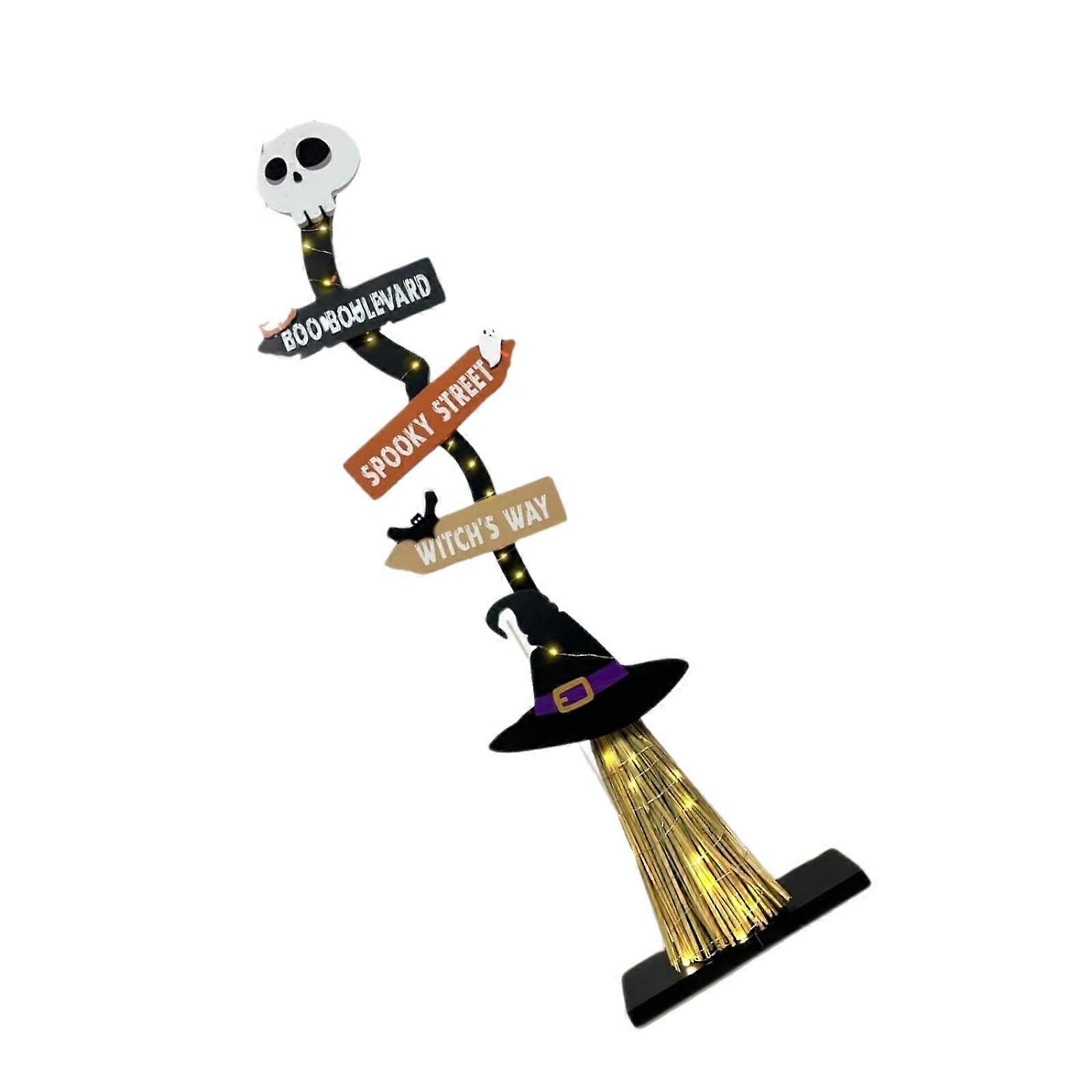 Halloween Decorations Lighted Wooden Witch’s Broom Porch Yard Decors Witches Broomsticks Sign Table Centerpieces Gift Multicolor