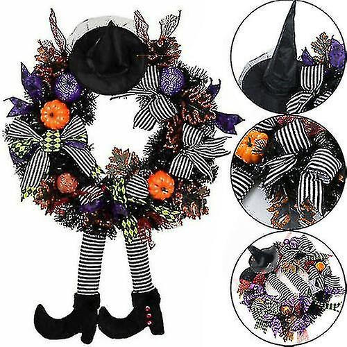 Halloween Party Decor Door Wreath Garland Outdoor Yard Decor Props Pumpkin Witch