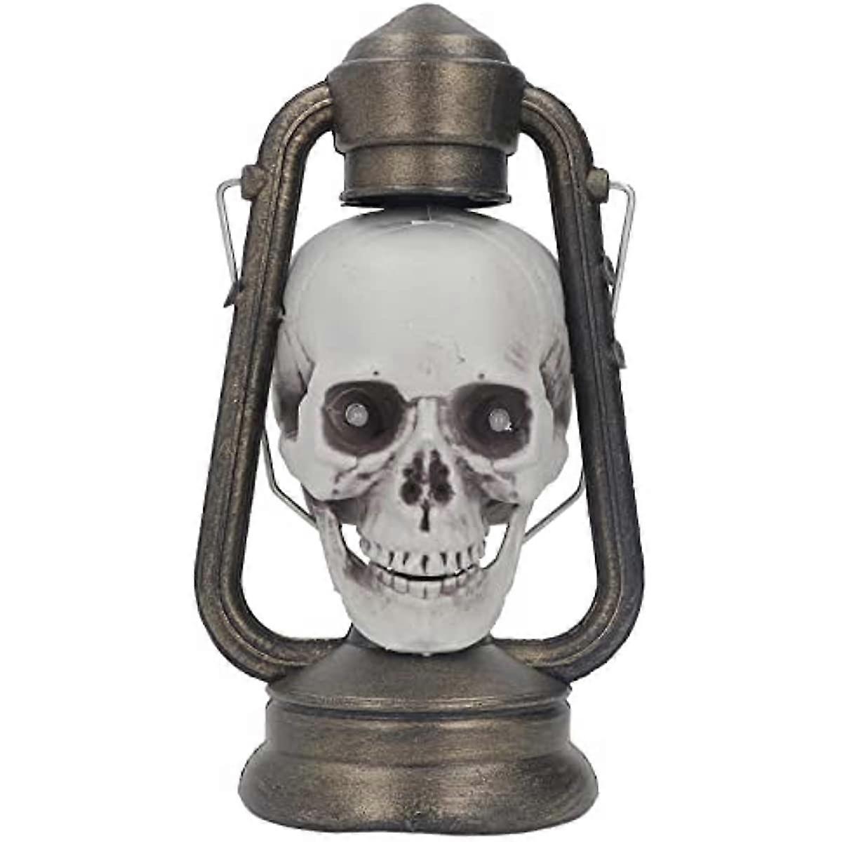 Halloween Lantern LED Skull Statue Light Halloween Decorations, Night Light Resin Skull Prop Horror Haunted House Party Ornament with LED Light Up Eye