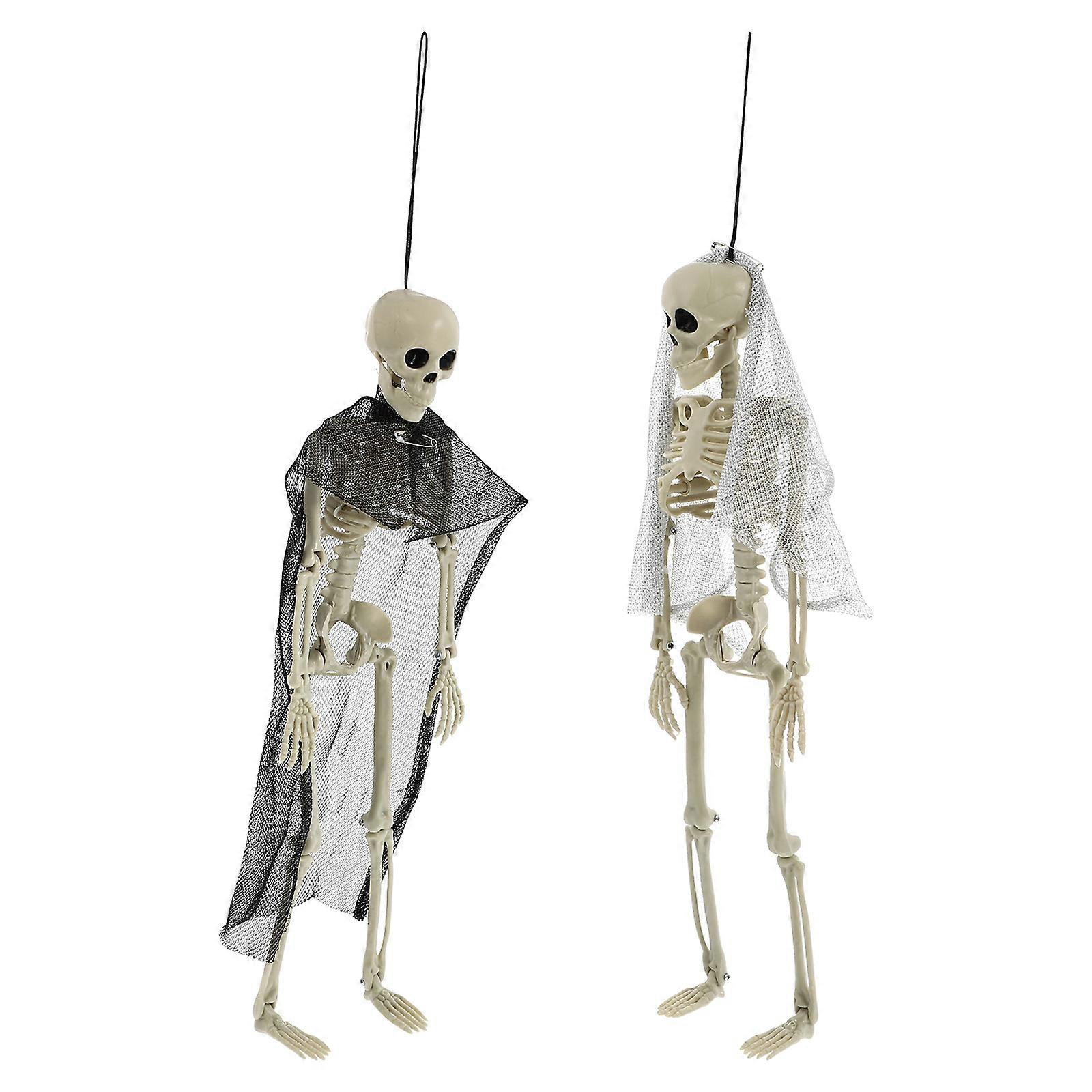 Halloween Decoration 2Pcs Realistic Skeletons Bride Groom Figures For Halloween Parties Bars Schools Assorted Color Durable Use