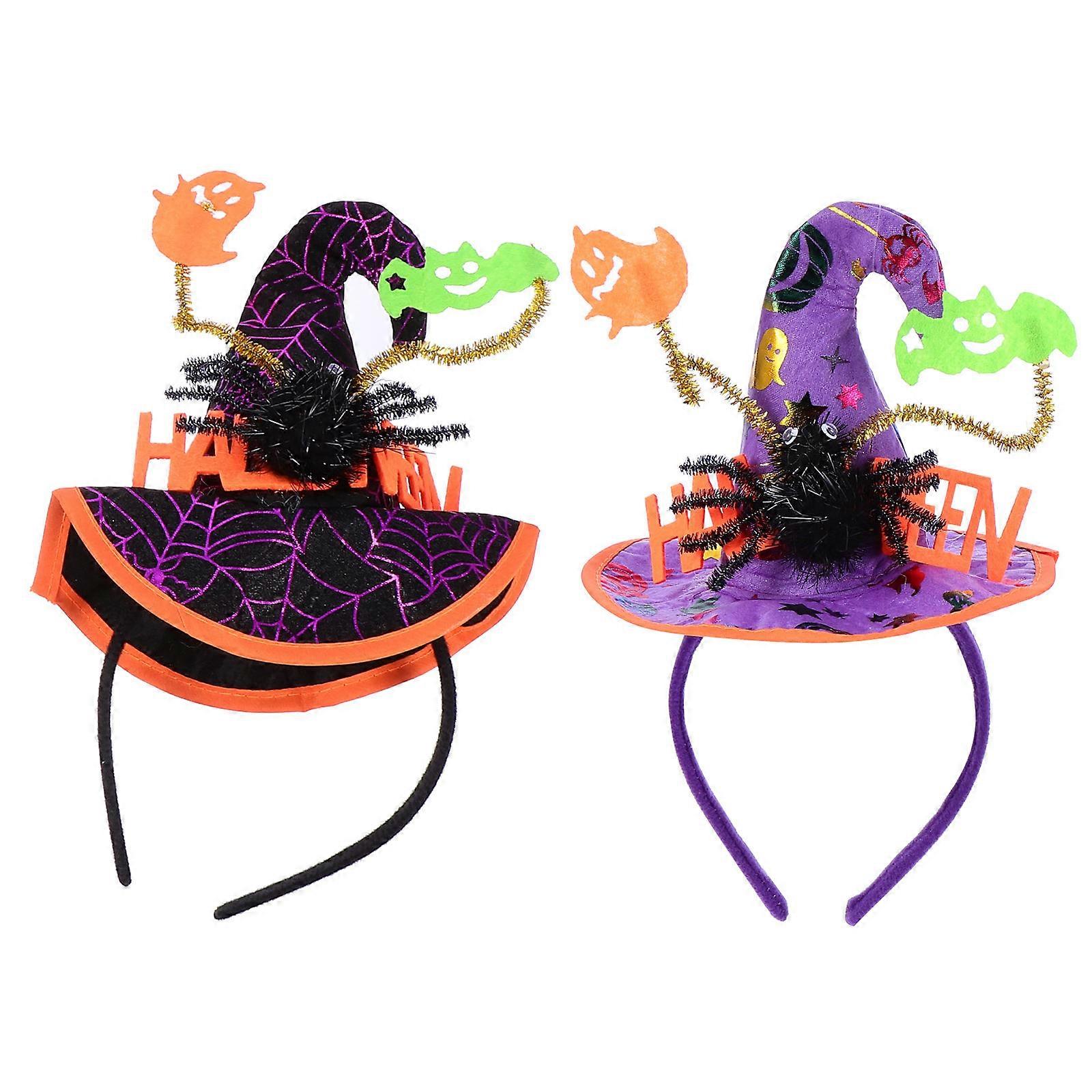 Halloween Headband Spider Witch Hat Hair Party Headbands for Masquerade Assorted Color 25X15cm Cotton Material 2Pcs