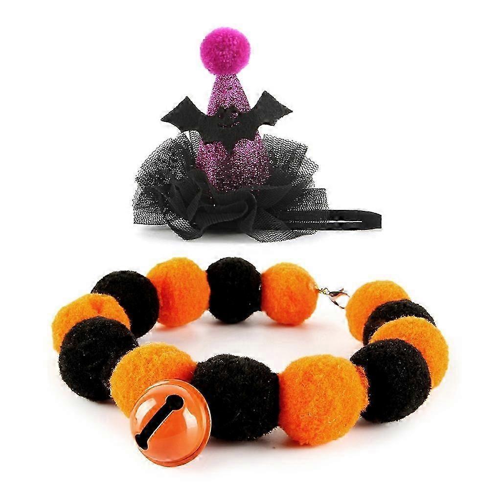 Halloween Pumpkin/ Bat Shape Hat&Necklace for Cat Dress Up Pet Accessory