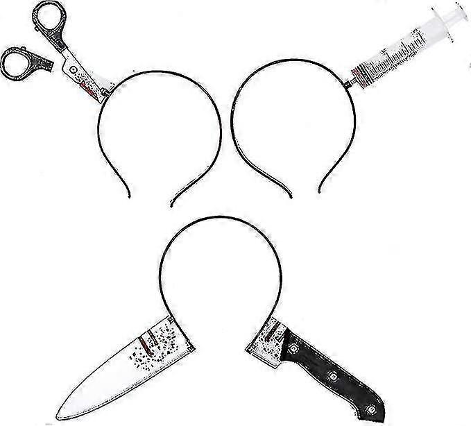 Halloween Kostm Accessoire Set 3 Stck Horror Haarreif Schere Messer Syringe Im Kopf Stirnbnder Fr Erwachsene Damen Mdchen Herren Kinder Halloween Part