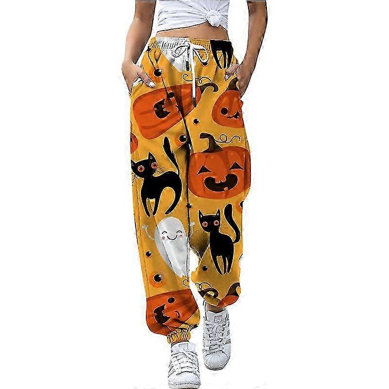 Halloween Pants Pumpkin Print Halloween Pants, Casual Drawstring Elastic Waist Pants, Women's Clothing