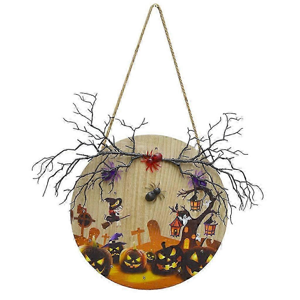 Halloween Sign Front Door Decor Farmhouse Porch Wall Signs with LED Light Decor