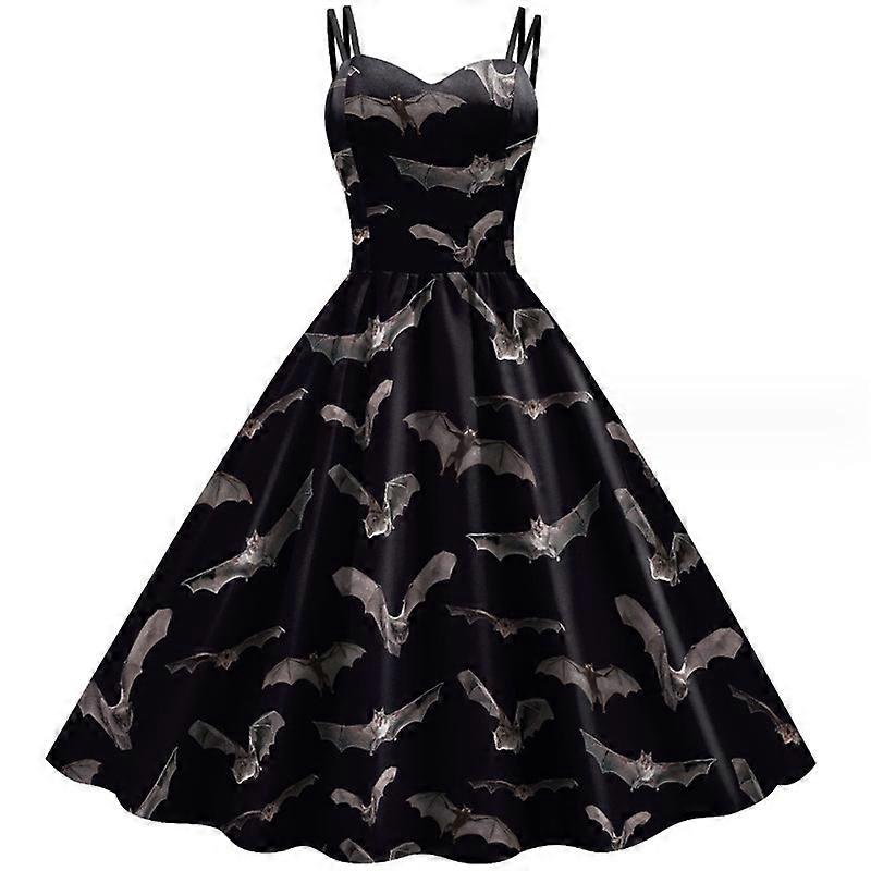 Halloween Dress Womens V-Neck Print Dress Vintage Bow Belt Cocktail Dress Fall Baggy Midi Dresses