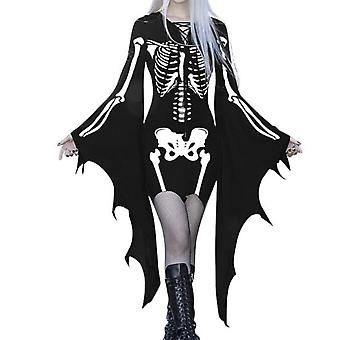 Halloween Dress Long Batwing Sleeve Skeleton Print Irregular Cuff Lace Up Sheath Slim Fit Above Knee Length Halloween Party Cosplay Costume