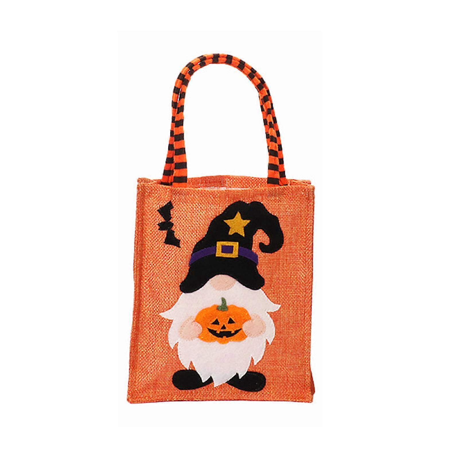 Halloween Candy Bag Linen Pumpkin Witch Portable Gift Storage Bucket for New Year Holiday Festival Party Gift Wrapping orange