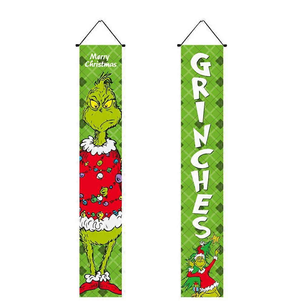 Home Decor Christmas Party The Grinch Door Banner Sign Porch Garden Wall Hanging Ornaments