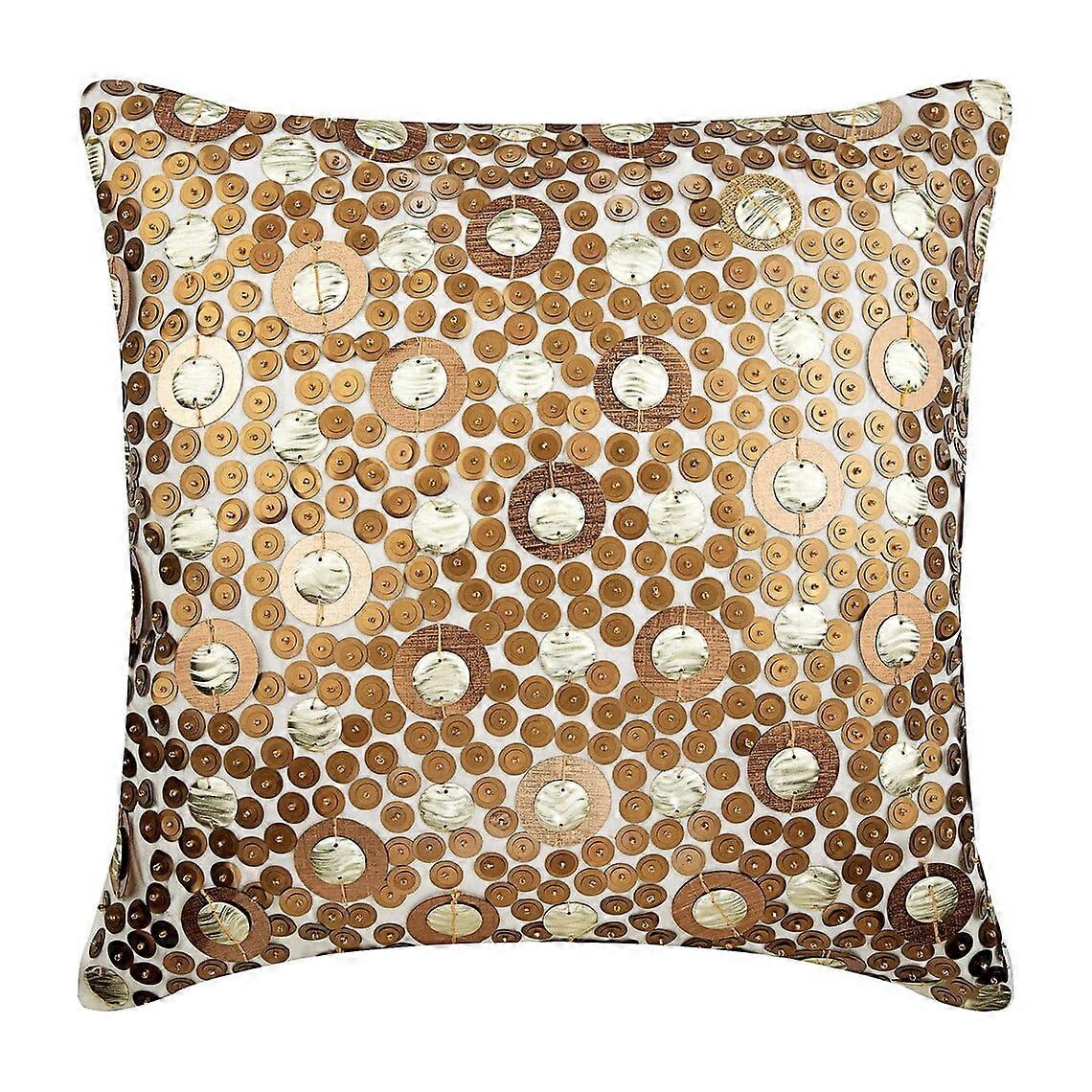 HomeCentric Cushion Covers, Gold Handmade Pillowcases 16x16 inch (40x40 cm) Pack of 2, Silk Couch Pillows, Circles & Dots, 3D Textured Sequins Accent