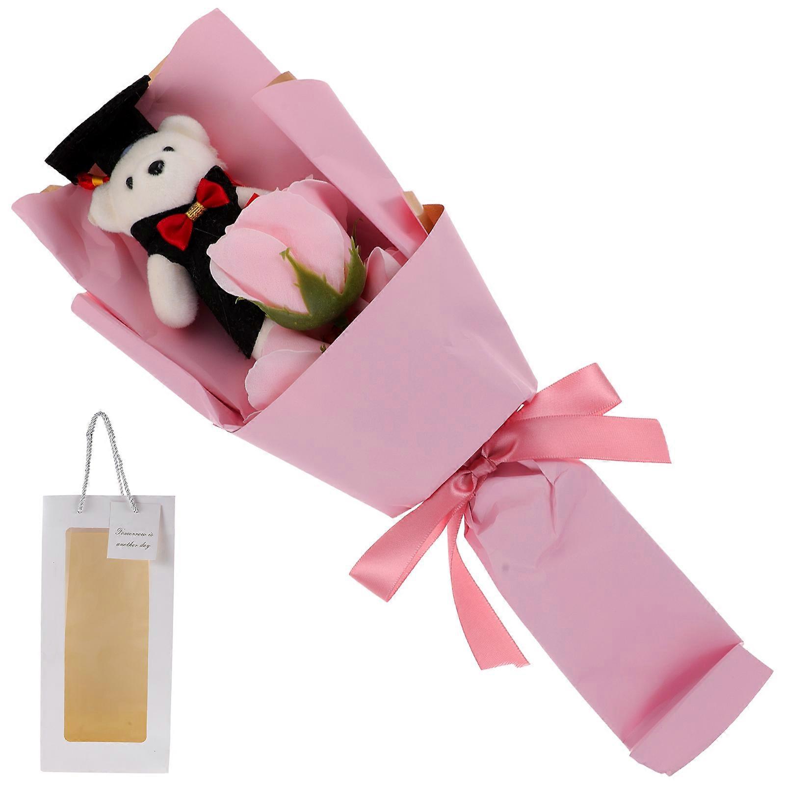 Scented Rose Bouquet Graduation Flower Bouquet Bear Shape For Home Decoration 1Set