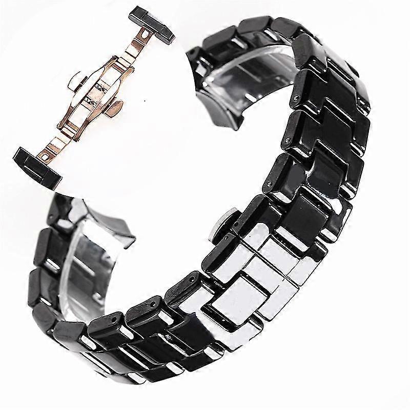 Black and White Butterfly Button Ceramic Straps for Men and Women Compatible with Armani Watches AR1400 AR1410 AR1402 AR1401