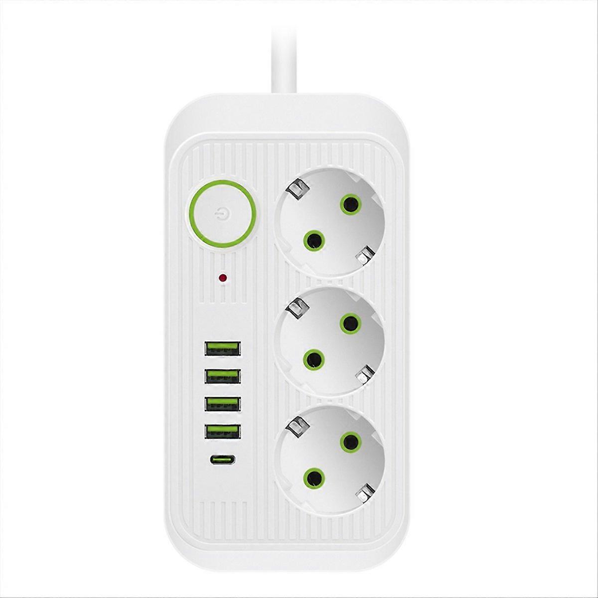 White 2M EU Plug Multi-Standard Socket Extension Cord Power Strip
