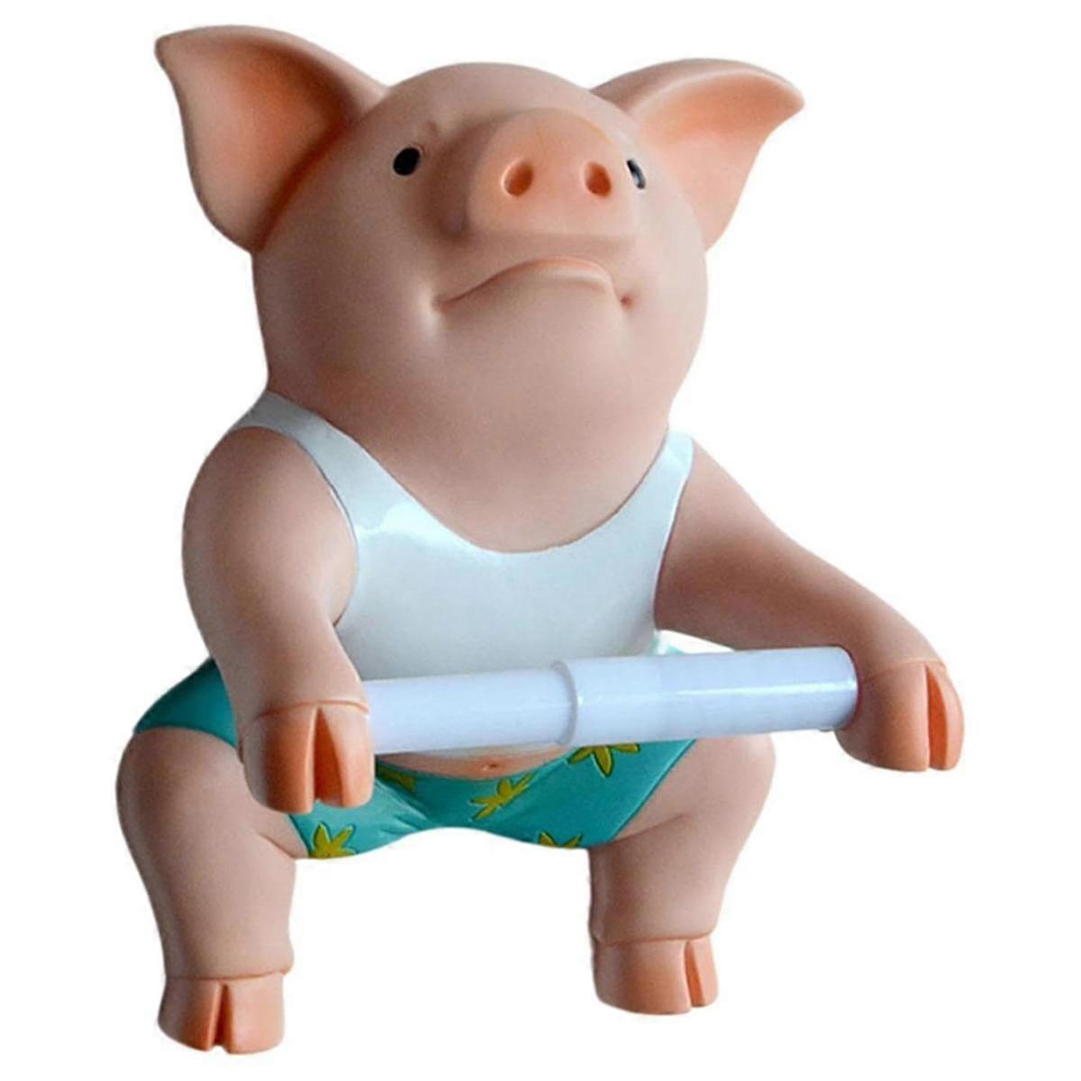 Pig Funny Toilet Paper Holder Wall Sculpture Wall Mount Animal Figurine Toilet of Roll Organizer for Bathroom Kitchen