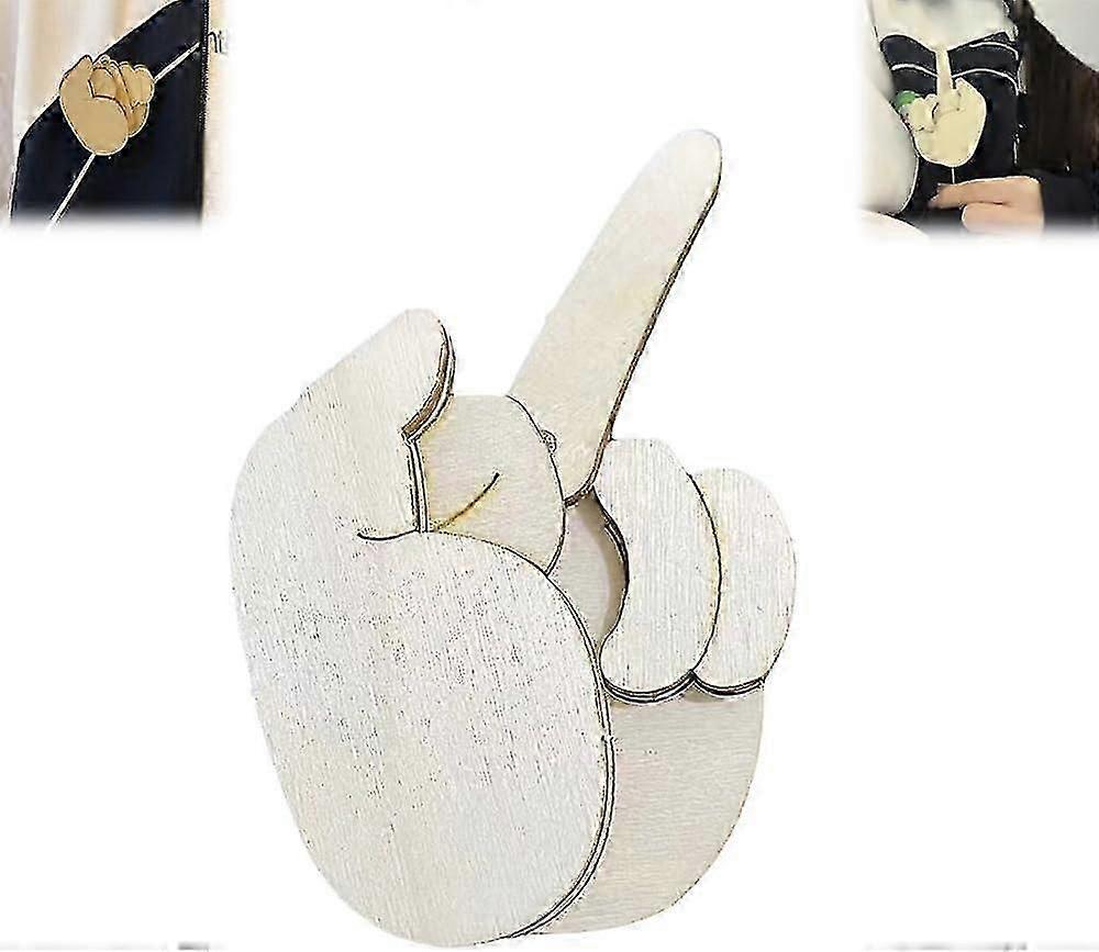 Funny Wooden Finger Brooch, Funny Middle Finger Pin DIY Kit, Flippable Middle Finger Pins Gag Gift, Interactive Mood Expressing Pin