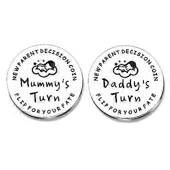 Αστείο ανοξείδωτο ατσάλι νέο γονεϊκό νόμισμα απόφασης διπλής όψης kid Challenge Νομίσματα για τη μαμά μπαμπά ντους μωρών Πρώτη φορά μαμά μπαμπάς να είναι νεογέννητο δώρο μωρών
