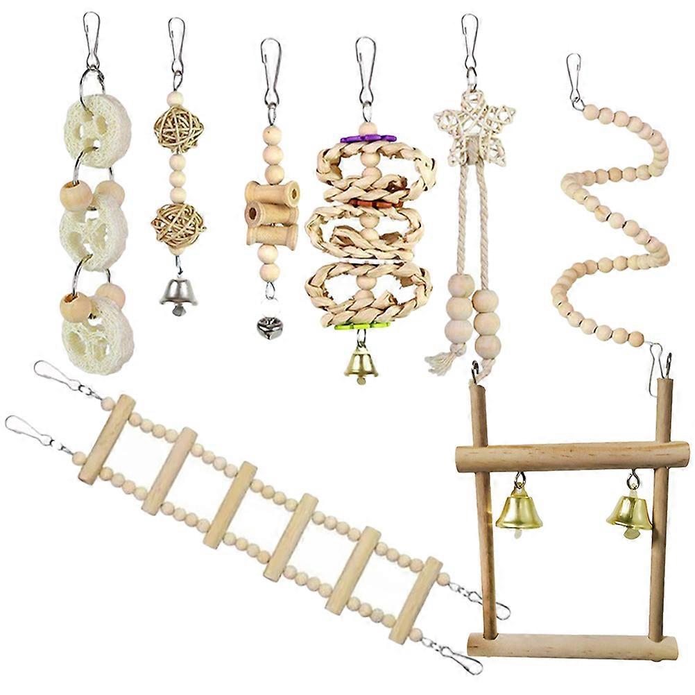 This Bird toy is made with good material for wear-resistant and use. This bird Laddering rod toy is comfortable for your bird's or parrot's feet. The perfect playground for your little birds or parrot to rest, adventure and explore. This Bird toy will keep your parrot busy playing with less disruption and more fun. Features -Color:Assorted Color -Material:Wood -Size(1):3.00X3.00X12.00cm/1.18X1.18X4.72in -Size(2):6.00X6.00X22.00cm/2.36X2.36X8.65in -Size(3):12.00X2.00X15.00cm/4.72X0.79X5.89in -Size(4):6.00X6.00X18.00cm/2.36X2.36X7.07in -Size(5):4.00X4.00X12.00cm/1.57X1.57X4.72in -Bird toy is made of premium wood material, bite resistant and has good texture. -The wood texture is very hard and not easy to damage and for use. -Stable and funny, this Bird toy is very convenient and practical to use. -It can help increase pet's activity space, a nice toy for parrot. It will give them a good experience. -Can be given as a gift for your families or friends who have a lovely small bird. Package list: 3 x Set of Bird Toys
