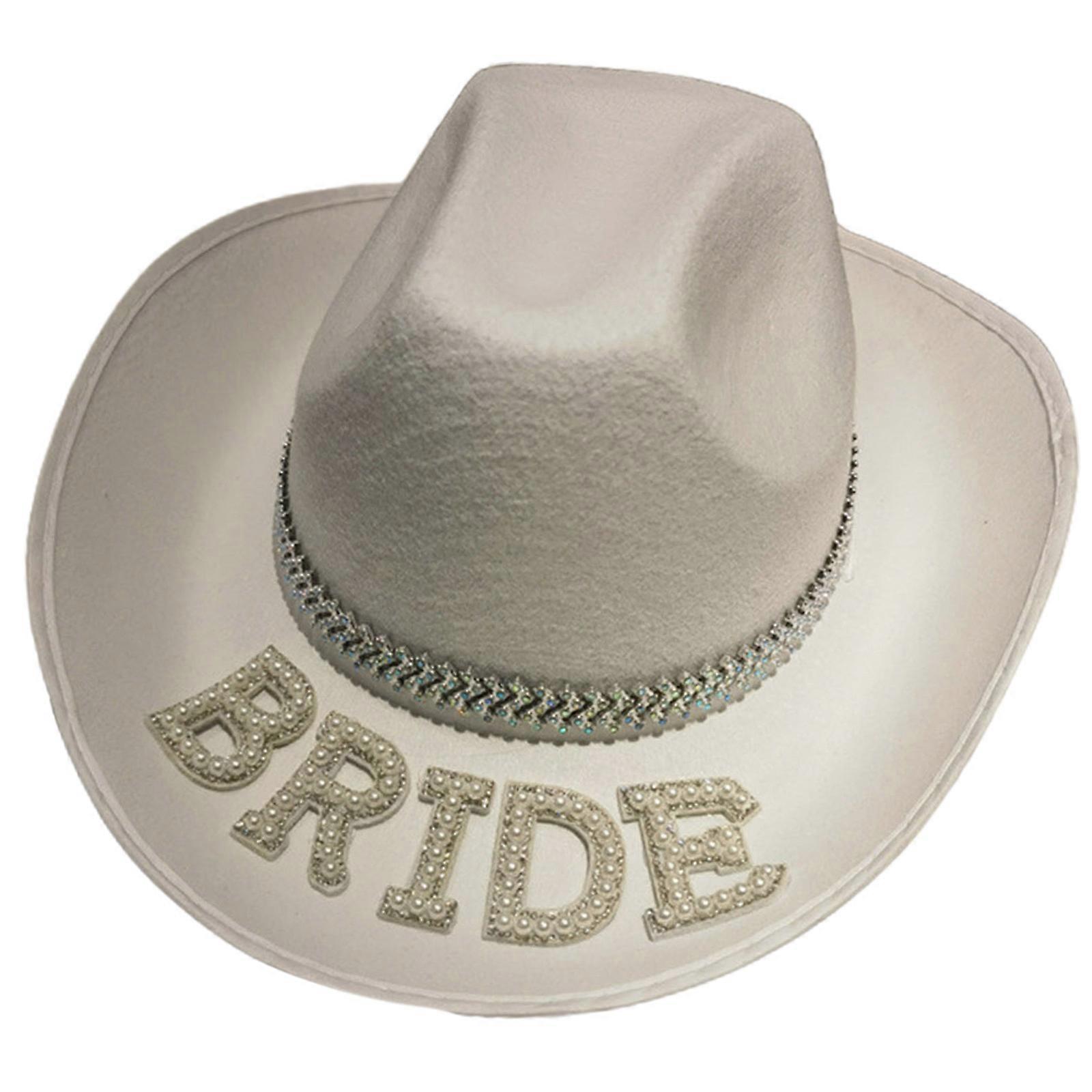 Sparkling Crystal Cowboy Hat Tassels Pearls for Bachelorette Party Cowboy Hat Disco Hat for Actor Actress White