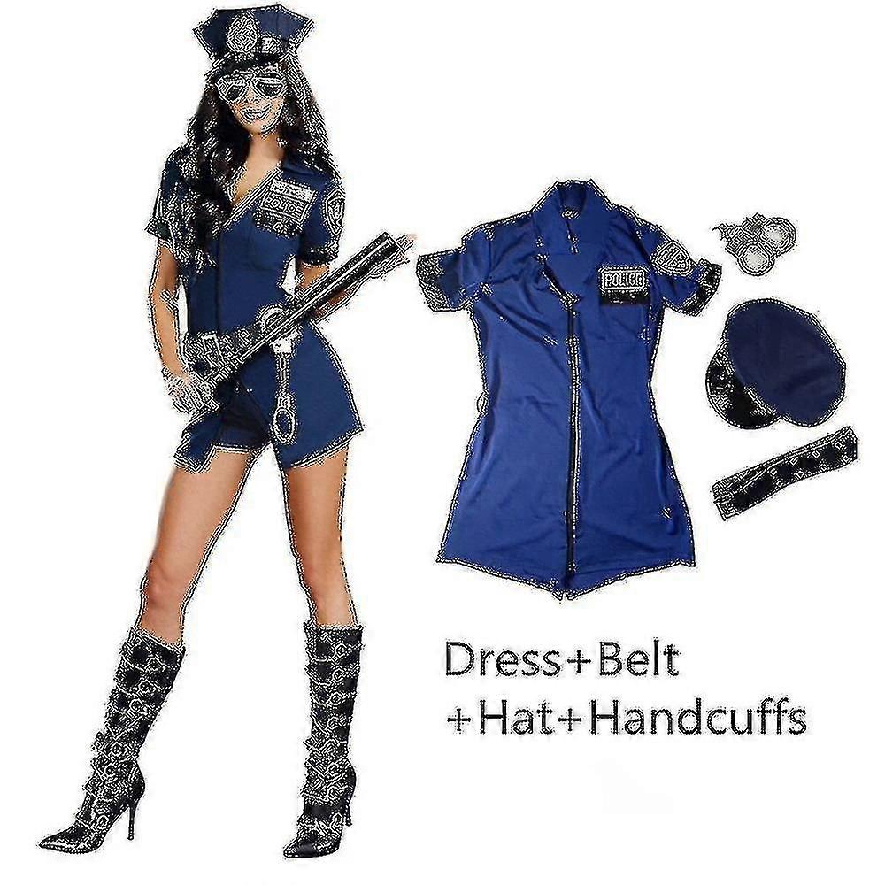 Police Costume Womens Short Sleeve Cops Officer Uniform Adult Female Halloween Christmas Party Police Fancy