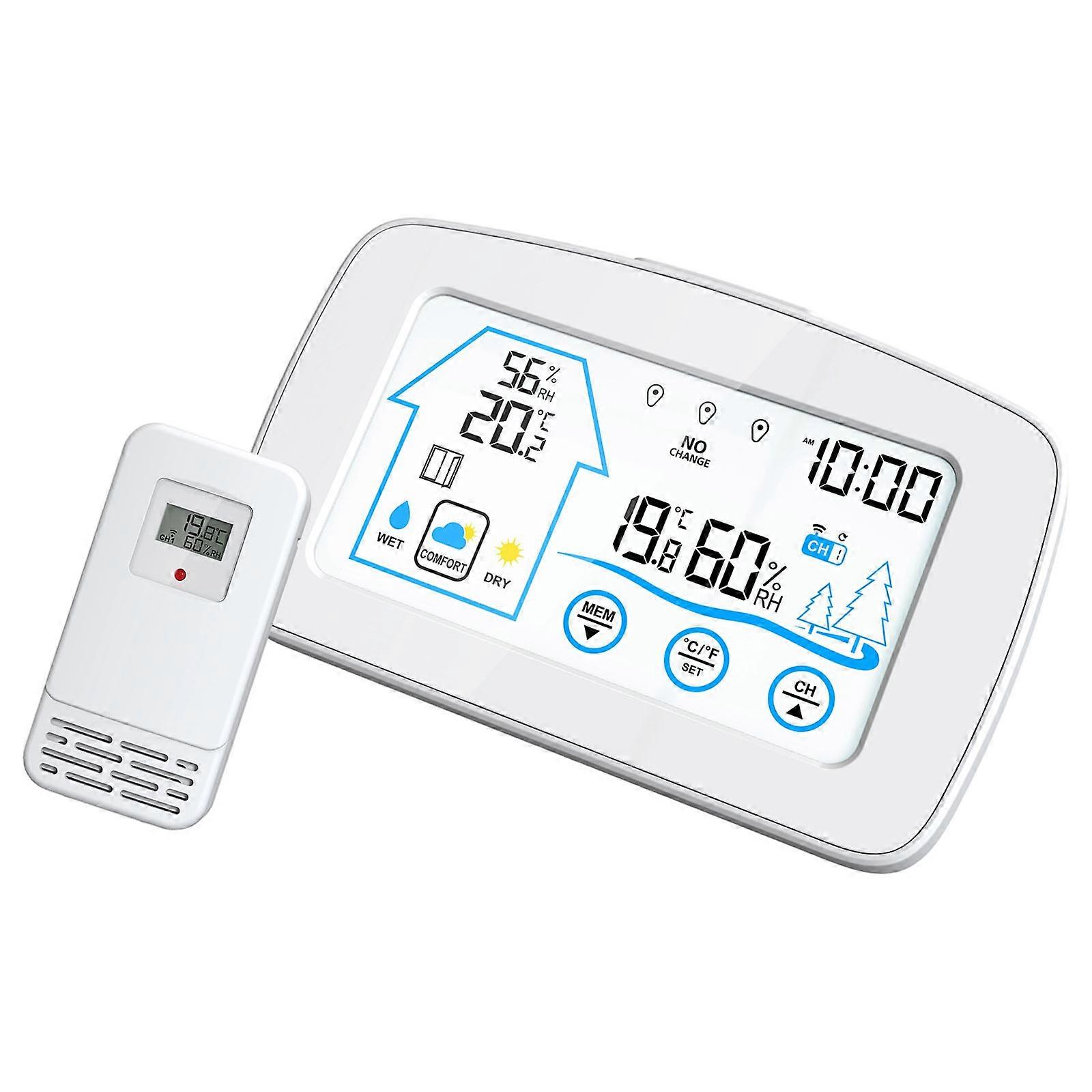 Wireless Temperature Humidity Sensors Indoor Outdoor LCD Color Screen Display Time Format And Window Alerts White